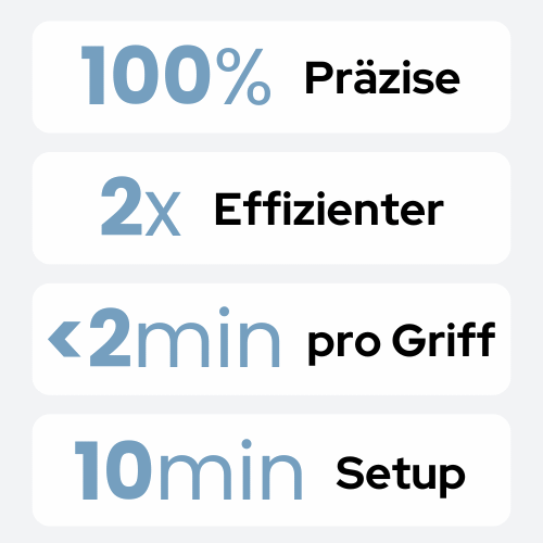 Vereinfacht die Installation um ein Vielfaches,spart dir das Anzeichnen, Nachmessen, Nachjustieren und den Stress, dass es am Ende doch nicht passt. Du brauchst den EasyHandle nur einmal einzustellen und kannst direkt einen Griff nach dem anderen montieren, das spart 80 % Zeit und 100 % Nerven.