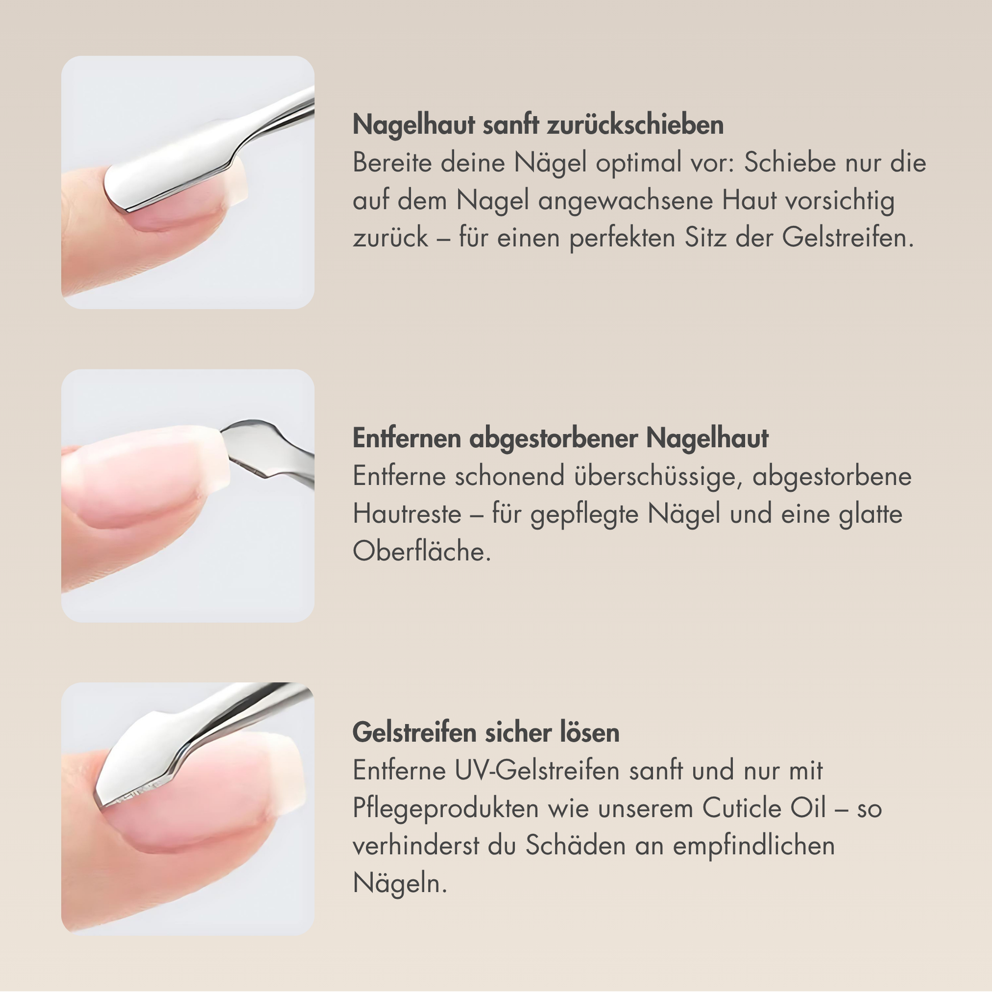 Das Must-have für perfekte NagelpflegeUnser Multitool ist der ideale Begleiter, um deine Nägel optimal auf die Gelstreifen vorzubereiten und diese schonend zu entfernen.